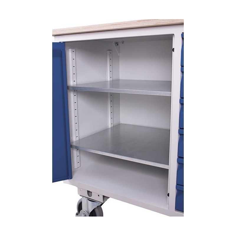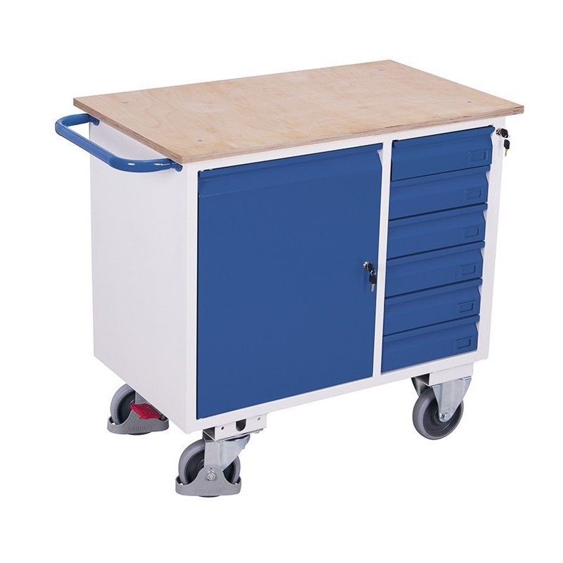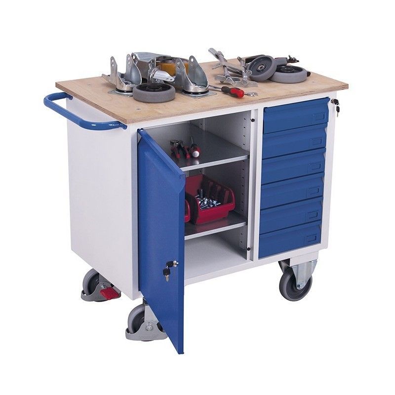 Tabelle für werkzeuge mit rädern mit 6 schubladen und seitentür mit 2 fliesen, mit tablett werkzeughalter. Tragfähigkeit bis 400 Kg.