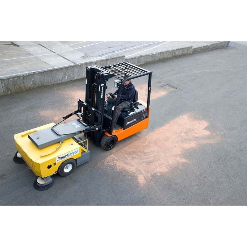 Le SmartSweep est l'outil idéal pour l'équitation dans votre chariot élévateur diesel ou électrique et peut collecter la saleté, le gravier, les déchets, les feuilles de terre. Il fonctionne mécaniquement sans aucune connexion hydraulique. Il est idéal pour l'extérieur et l'intérieur. Valable pour la plupart des brouettes. Il est monté sur les fourches et fonctionne avec l'impulsion des roues de la moelle.