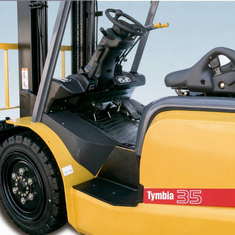 The Diesel Tymbia 3,5tn forklift is designed to offer power, stability and efficiency in demanding industrial and logistics environments. With a maximum lifting capacity of 3,500kg and a 500mm load center, this model integrates a diesel engine compatible with Euro5 regulations, guaranteeing a cleaner and more efficient operation. Its automatic transmission Power SHIFT (1-1) and its hydraulic system with working pressure of 180kg / cm² allow fluid work cycles, with lifting speeds of up to 500mm / s (without load) and 450mm / s