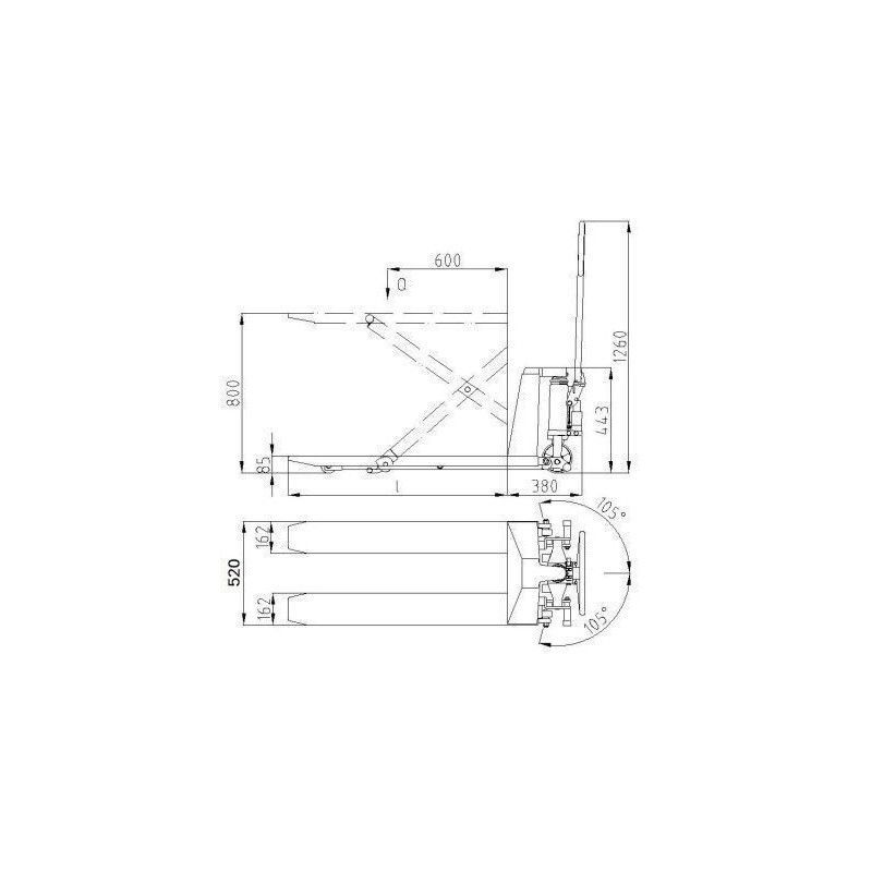 Manual scissors 1,500 kg for handling and use as an ergonomic work table. It facilitates logistics processes in warehouses by hydraulic lifting up to 800mm, guaranteeing efficiency and operational safety.