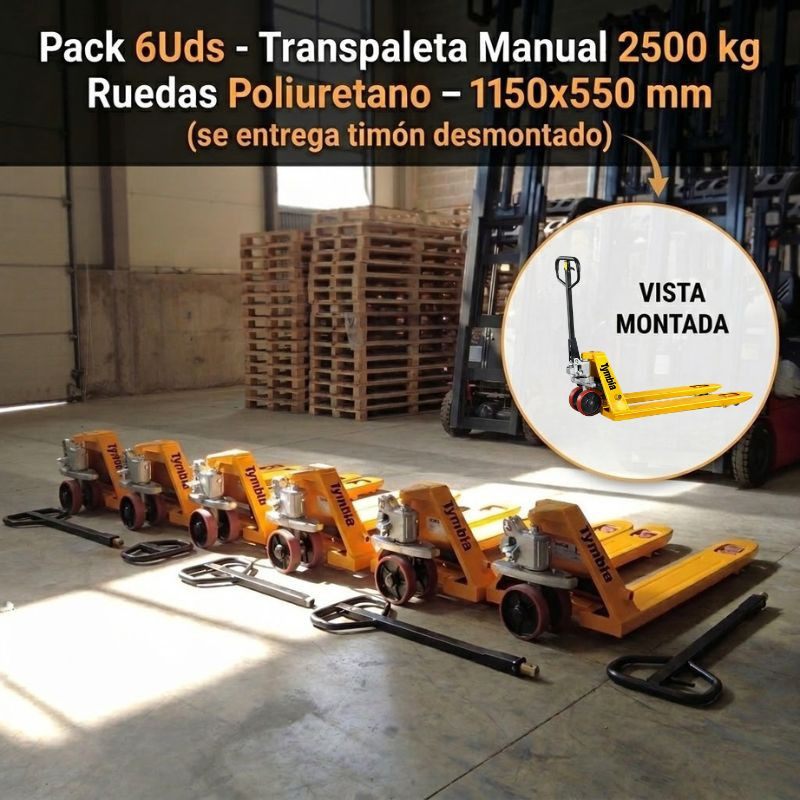 Confezione 6uds - Transfase manuale 2500 kg - Ruote in gomma- 1150x550 mm (fornita con...