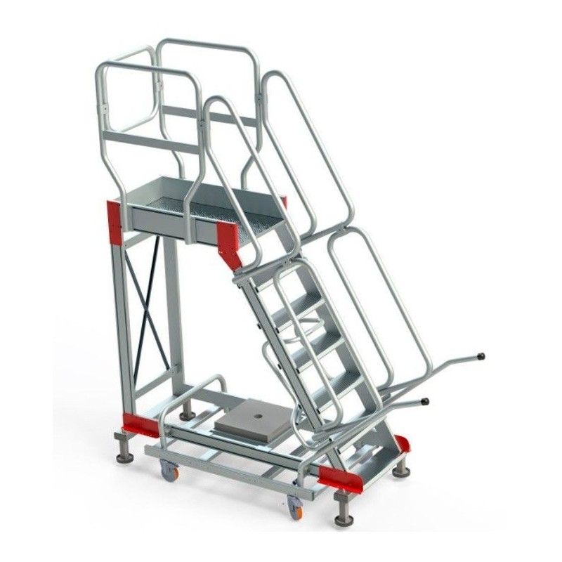 Scala con piattaforma e base con ruote con pioli di 150 mm e inclinazione a 60 °.
