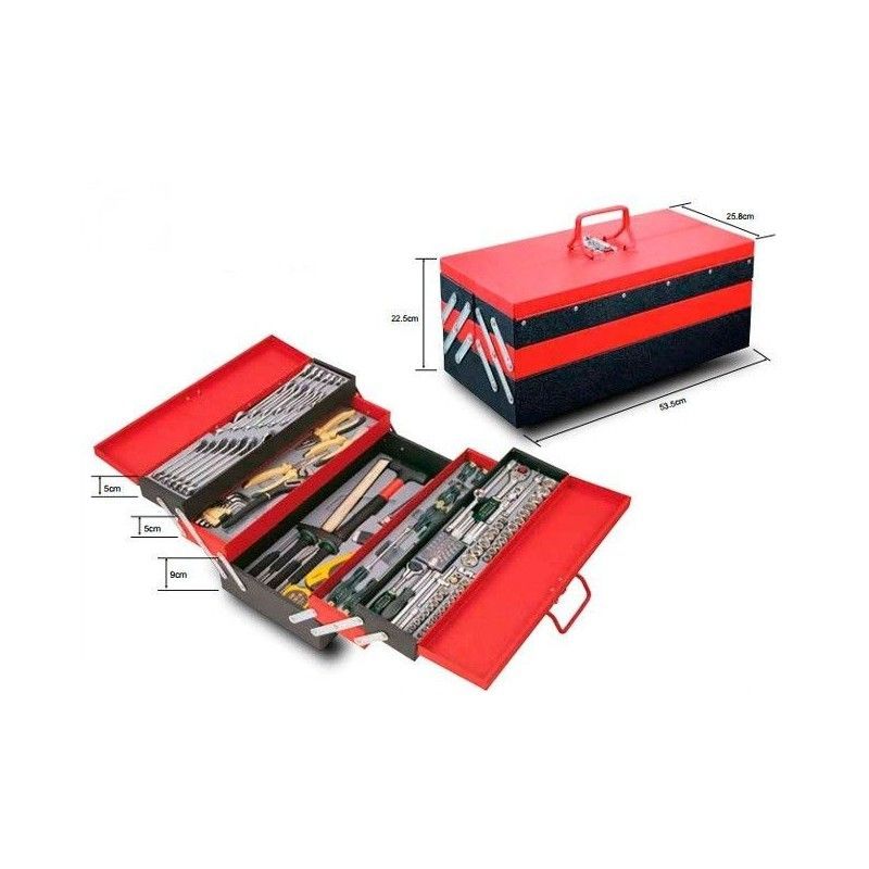 Caixa de ferramentas 3 alturas, incluindo 101 ferramentas. Ideal para uso em todos os tipos de oficinas.