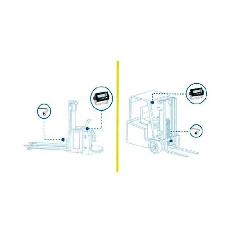 Kit de pesagem por pressão para carrinhos de rodas contrabalançados de 18-72V. Rápido e fácil de instalar através de um T-binding e confortável para ver graças ao suporte ajustável.